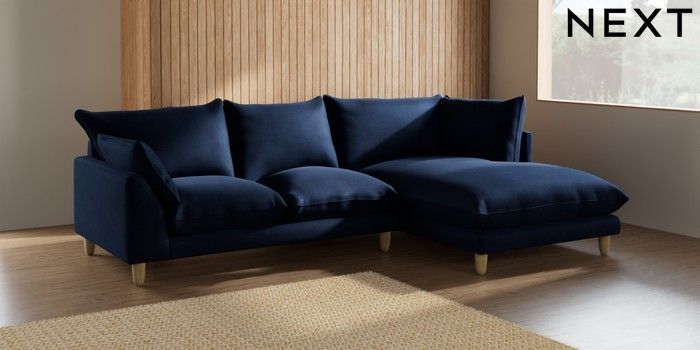 7.2.6 Buy Noa Deep Relaxed Sit Medium Corner Chaise - Right Hand Luxe Chenille Navy Blue High Leg - Light from the Laura Ashley online shop Click here to use our website with more accessibility support, for example screen readers
