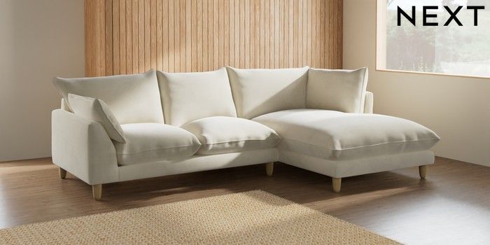 7.2.6 Buy Noa Deep Relaxed Sit Medium Corner Chaise - Right Hand Luxe Chenille Oyster High Leg - Light from the Laura Ashley online shop Click here to use our website with more accessibility support, for example screen readers