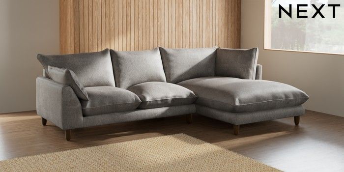7.2.6 Buy Noa Deep Relaxed Sit Medium Corner Chaise - Right Hand Plush Chenille Light Grey High Leg - Mid from the Laura Ashley online shop Click here to use our website with more accessibility support, for example screen readers