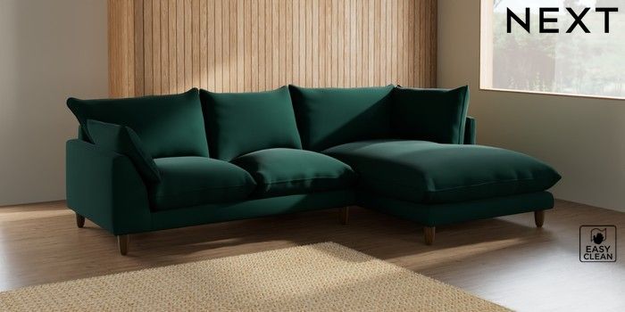 7.2.6 Buy Noa Deep Relaxed Sit Medium Corner Chaise - Right Hand Plush Velvet Easy Clean Bottle Green High Leg - Mid from the Laura Ashley online shop Click here to use our website with more accessibility support, for example screen readers