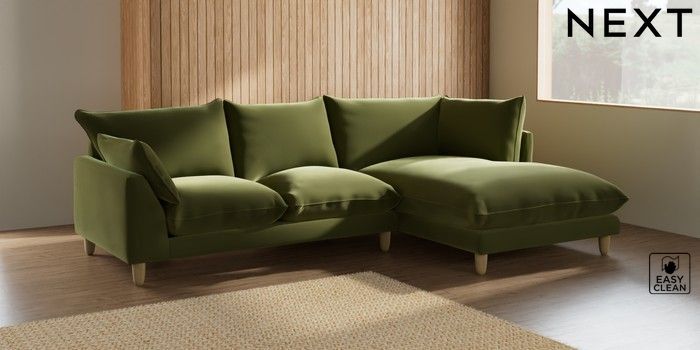 7.2.6 Buy Noa Deep Relaxed Sit Medium Corner Chaise - Right Hand Plush Velvet Easy Clean Mid Olive Green High Leg - Light from the Laura Ashley online shop Click here to use our website with more accessibility support, for example screen readers