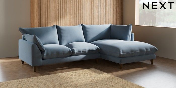 7.2.6 Buy Noa Deep Relaxed Sit Medium Corner Chaise - Right Hand Relaxed Linen Look Mid Blue High Leg - Mid from the Laura Ashley online shop Click here to use our website with more accessibility support, for example screen readers