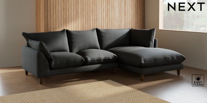 7.2.6 Buy Noa Deep Relaxed Sit Medium Corner Chaise - Right Hand Tweedy Blend Easy Clean Charcoal Grey High Leg - Mid from the Laura Ashley online shop Click here to use our website with more accessibility support, for example screen readers