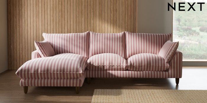 7.3.1 Buy Noa Deep Relaxed Sit Medium Sofa Chaise - Left Hand Bold Chenille Stripe Dark Pink High Leg - Mid from the Laura Ashley online shop