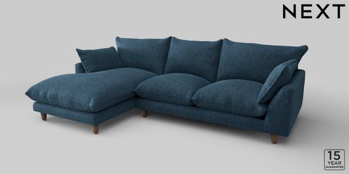 6.12.1 Buy Noa Deep Relaxed Sit Medium Sofa Chaise - Left Hand Cotswold Chenille Dark Blue High Leg - Mid from the Laura Ashley online shop Click here to use our website with more accessibility support, for example screen readers