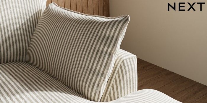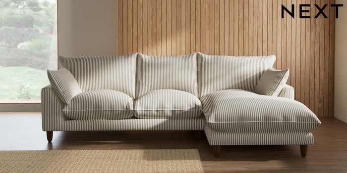 7.3.1 Buy Noa Deep Relaxed Sit Medium Sofa Chaise - Right Hand Chenille Stripe Moss Green High Leg - Mid from the Laura Ashley online shop Click here to use our website with more accessibility support, for example screen readers