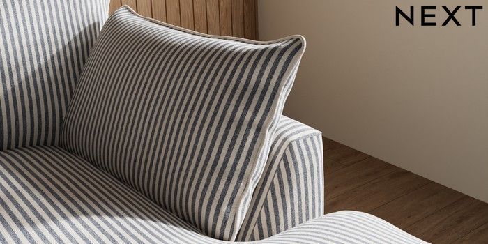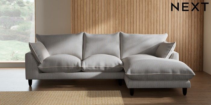 7.3.1 Buy Noa Deep Relaxed Sit Medium Sofa Chaise - Right Hand Chenille Stripe Slate Blue High Leg - Dark from the Laura Ashley online shop Click here to use our website with more accessibility support, for example screen readers
