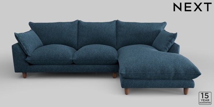 6.12.1 Buy Noa Deep Relaxed Sit Medium Sofa Chaise - Right Hand Cotswold Chenille Dark Blue High Leg - Mid from the Laura Ashley online shop Click here to use our website with more accessibility support, for example screen readers