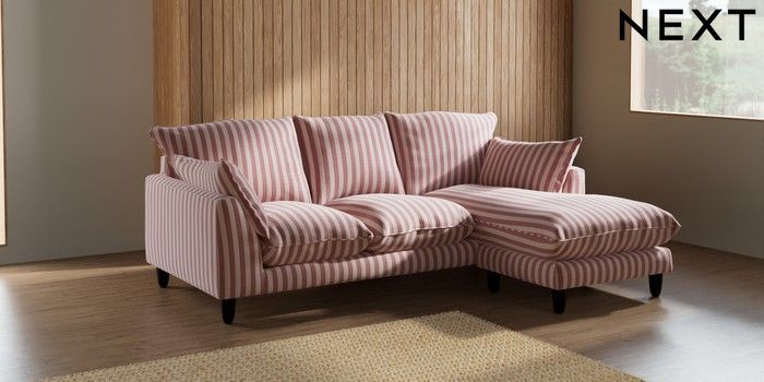 7.2.6 Buy Noa Deep Relaxed Sit Small Sofa Chaise - Universal Bold Chenille Stripe Dark Pink High Leg - Dark from the Laura Ashley online shop Click here to use our website with more accessibility support, for example screen readers