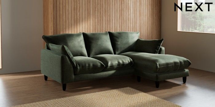 7.2.6 Buy Noa Deep Relaxed Sit Small Sofa Chaise - Universal Luxe Chenille Mid Green High Leg - Dark from the Laura Ashley online shop Click here to use our website with more accessibility support, for example screen readers