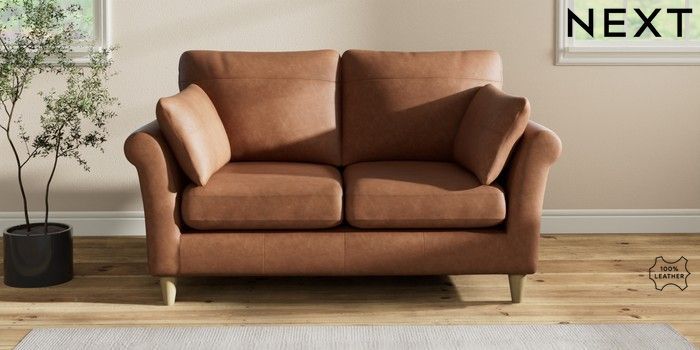 7.2.6 Buy Oakham Leather 2 Seater Sofa Rustic Leather Light Brown Low Conical - Light from the Laura Ashley online shop Click here to use our website with more accessibility support, for example screen readers
