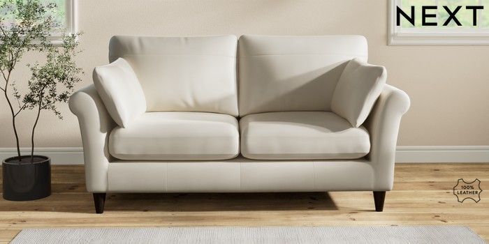 7.2.6 Buy Oakham Leather 3 Seater Small Sofa Columbia Silver Grey Low Conical - Dark from the Laura Ashley online shop Click here to use our website with more accessibility support, for example screen readers