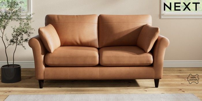 7.2.6 Buy Oakham Leather 3 Seater Small Sofa Turin Leather Tan Brown Low Conical - Dark from the Laura Ashley online shop Click here to use our website with more accessibility support, for example screen readers