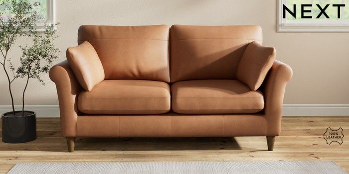 7.2.6 Buy Oakham Leather 3 Seater Small Sofa Turin Leather Tan Brown Low Conical - Mid from the Laura Ashley online shop Click here to use our website with more accessibility support, for example screen readers
