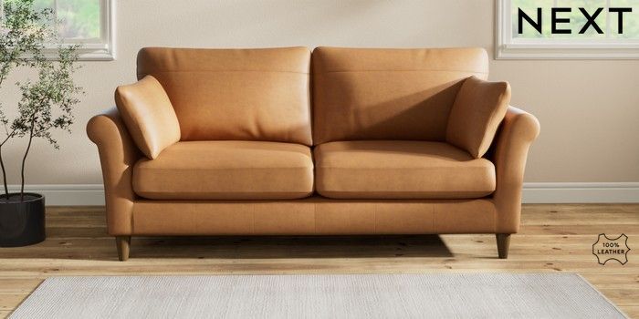 7.2.6 Buy Oakham Leather 3 Seater Sofa Antiqued Leather Light Tan Brown Low Conical - Mid from the Laura Ashley online shop Click here to use our website with more accessibility support, for example screen readers
