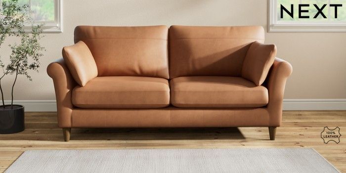 7.2.6 Buy Oakham Leather 3 Seater Sofa Turin Leather Tan Brown Low Conical - Mid from the Laura Ashley online shop Click here to use our website with more accessibility support, for example screen readers