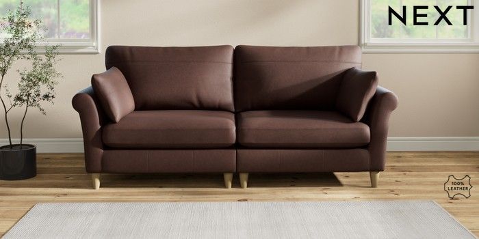 7.2.6 Buy Oakham Leather 4 Seater Sofa Rustic Leather Dark Brown Low Conical - Light from the Laura Ashley online shop Click here to use our website with more accessibility support, for example screen readers