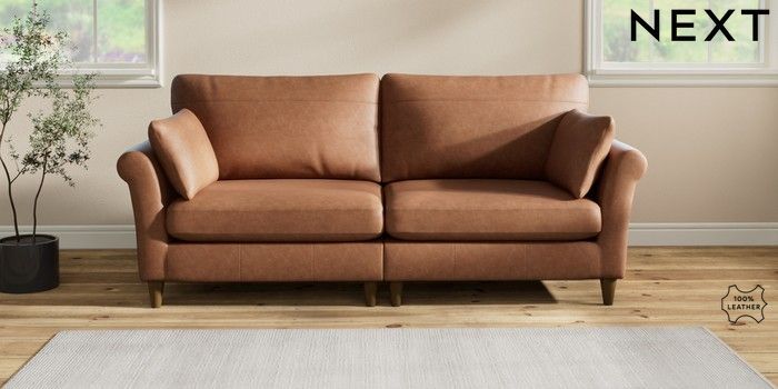 7.2.6 Buy Oakham Leather 4 Seater Sofa Rustic Leather Light Brown Low Conical - Mid from the Laura Ashley online shop Click here to use our website with more accessibility support, for example screen readers