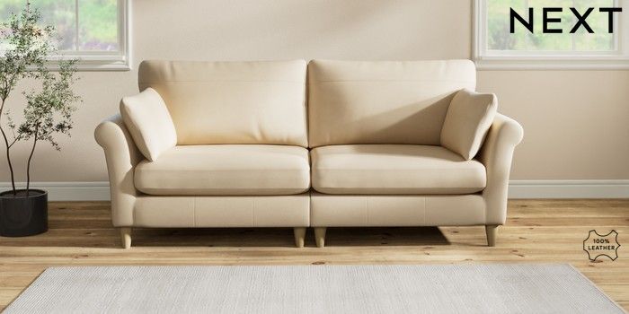 7.2.6 Buy Oakham Leather 4 Seater Sofa Turin Leather Light Natural Low Conical - Light from the Laura Ashley online shop Click here to use our website with more accessibility support, for example screen readers