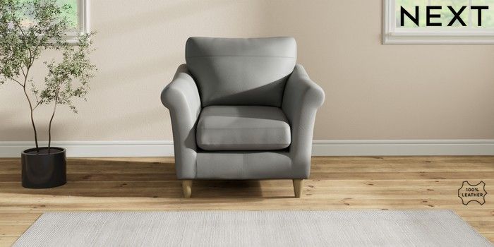 7.2.6 Buy Oakham Leather Armchair Columbia French Grey Low Conical - Light from the Laura Ashley online shop Click here to use our website with more accessibility support, for example screen readers