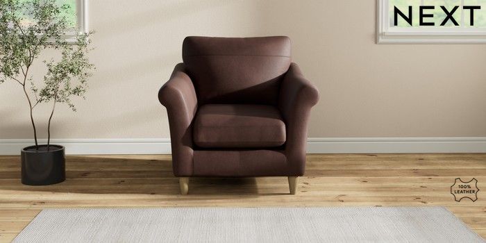 7.2.6 Buy Oakham Leather Armchair Rustic Leather Dark Brown Low Conical - Light from the Laura Ashley online shop Click here to use our website with more accessibility support, for example screen readers
