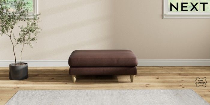 7.2.6 Buy Oakham Leather Footstool Rustic Leather Dark Brown Low Conical - Light from the Laura Ashley online shop Click here to use our website with more accessibility support, for example screen readers