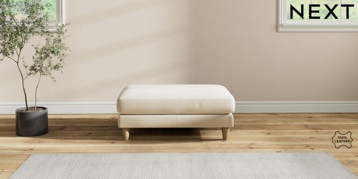 7.2.6 Buy Oakham Leather Footstool Turin Leather Cream Low Conical - Light from the Laura Ashley online shop Click here to use our website with more accessibility support, for example screen readers