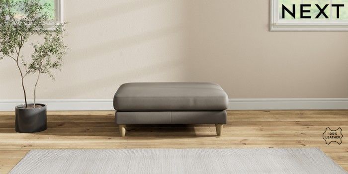 7.2.6 Buy Oakham Leather Footstool Turin Leather French Grey Low Conical - Light from the Laura Ashley online shop Click here to use our website with more accessibility support, for example screen readers