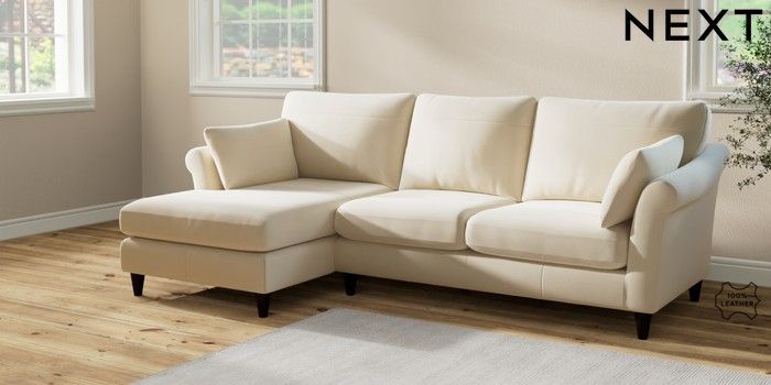 7.2.6 Buy Oakham Leather Medium Sofa Chaise - Left Hand Turin Leather Cream Low Conical - Dark from the Laura Ashley online shop Click here to use our website with more accessibility support, for example screen readers