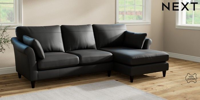 7.2.6 Buy Oakham Leather Medium Sofa Chaise - Right Hand Columbia Black Low Conical - Dark from the Laura Ashley online shop Click here to use our website with more accessibility support, for example screen readers