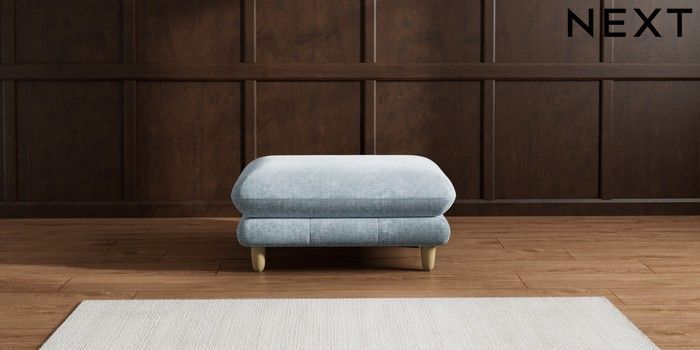 7.2.6 Buy Odella Footstool Plush Chenille Light Blue High Leg - Light from the Laura Ashley online shop Click here to use our website with more accessibility support, for example screen readers