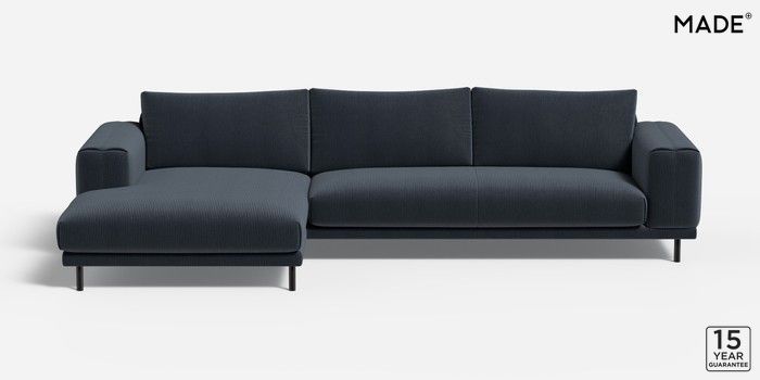 6.12.1 Buy Odin by Made Medium Sofa Chaise - Left Hand Matt Corduroy Midnight Blue Skinny - Black from the Laura Ashley online shop Click here to use our website with more accessibility support, for example screen readers