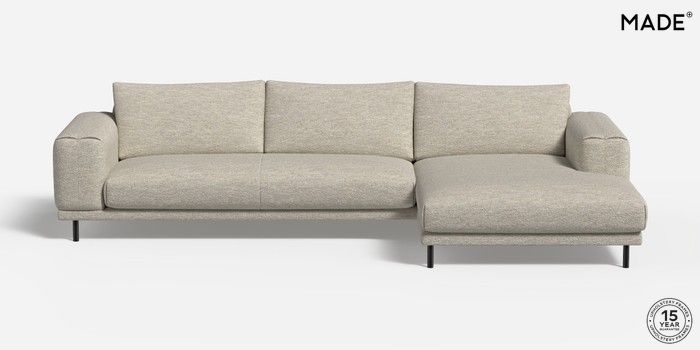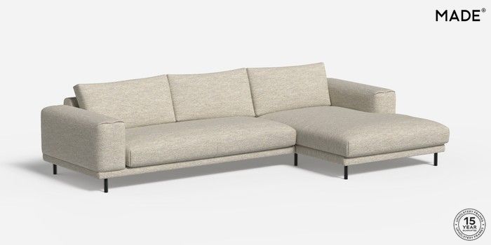 6.12.1 Buy Odin by Made Medium Sofa Chaise - Right Hand Boucle Textured Weave Light Natural Skinny - Black from the Laura Ashley online shop Click here to use our website with more accessibility support, for example screen readers