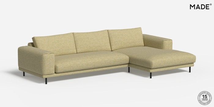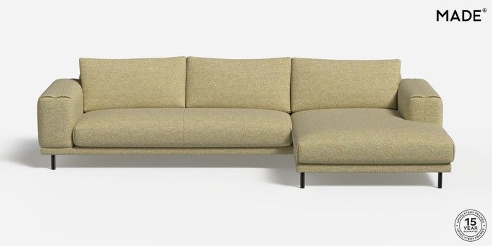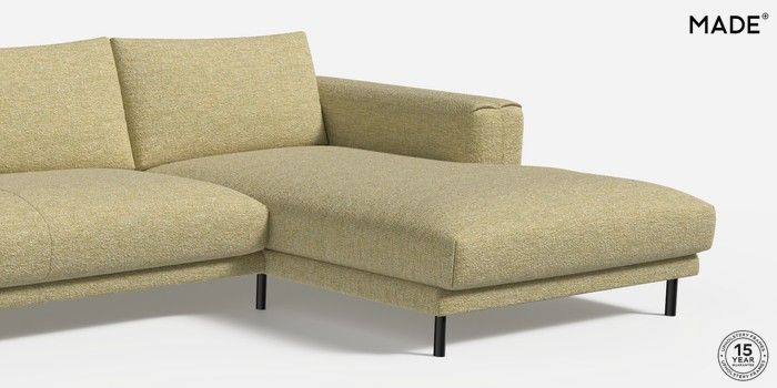 6.12.1 Buy Odin by Made Medium Sofa Chaise - Right Hand Boucle Textured Weave Pale Fir Green Skinny - Black from the Laura Ashley online shop Click here to use our website with more accessibility support, for example screen readers