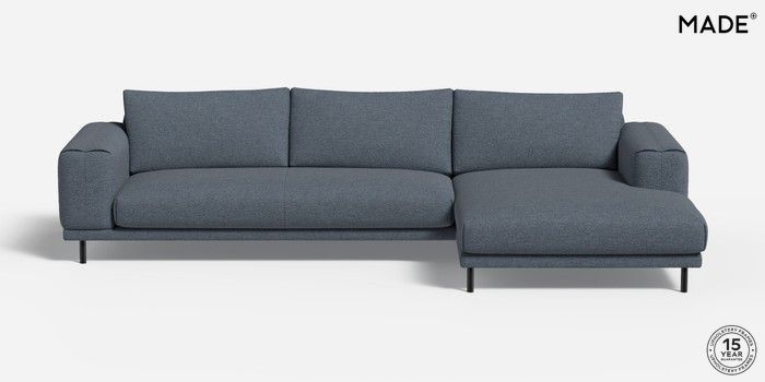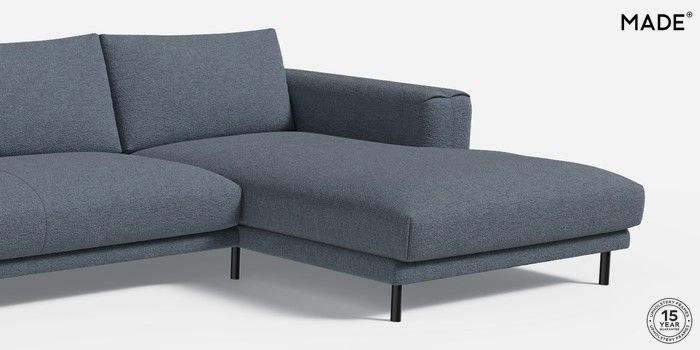 6.12.1 Buy Odin by Made Medium Sofa Chaise - Right Hand Boucle Textured Weave Slate Blue Skinny - Black from the Laura Ashley online shop Click here to use our website with more accessibility support, for example screen readers