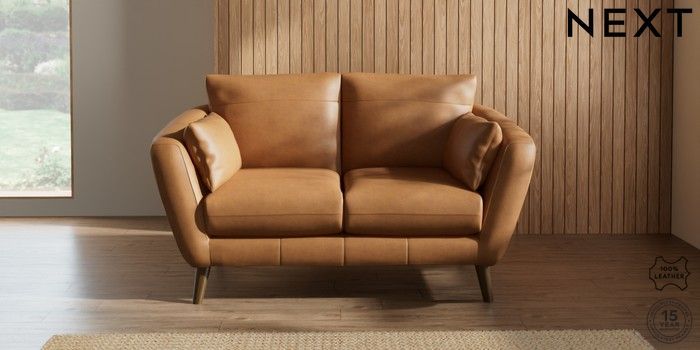 6.12.1 Buy Orlo Leather 2 Seater Small Sofa Antiqued Leather Light Tan Brown Retro Tapered - Mid from the Laura Ashley online shop Click here to use our website with more accessibility support, for example screen readers
