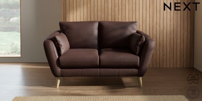 6.12.1 Buy Orlo Leather 2 Seater Small Sofa Rustic Leather Dark Brown Retro Tapered - Light from the Laura Ashley online shop Click here to use our website with more accessibility support, for example screen readers