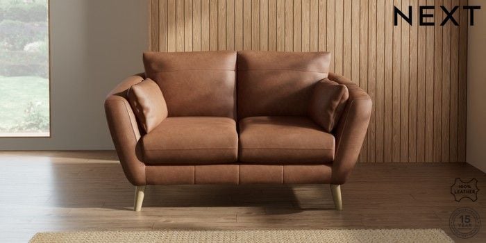 6.12.1 Buy Orlo Leather 2 Seater Small Sofa Rustic Leather Light Brown Retro Tapered - Light from the Laura Ashley online shop Click here to use our website with more accessibility support, for example screen readers