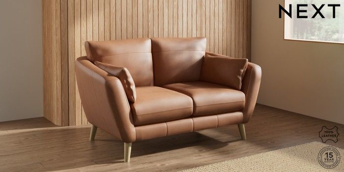 7.0.3 Buy Orlo Leather 2 Seater Small Sofa Turin Leather Tan Brown Retro Tapered - Light from the Laura Ashley online shop Click here to use our website with more accessibility support, for example screen readers