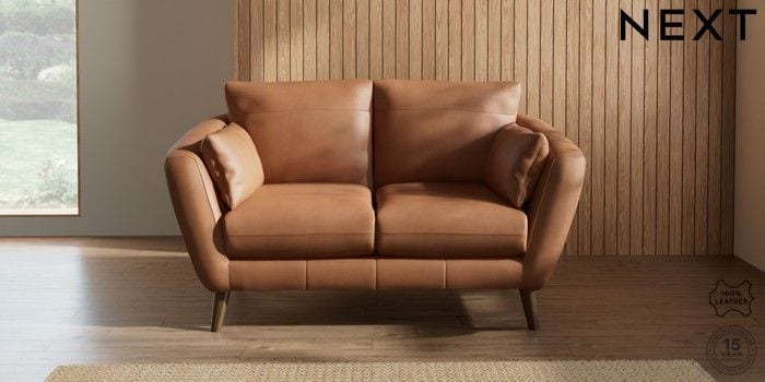 6.12.1 Buy Orlo Leather 2 Seater Small Sofa Turin Leather Tan Brown Retro Tapered - Mid from the Laura Ashley online shop Click here to use our website with more accessibility support, for example screen readers