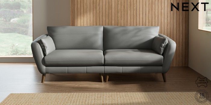 6.12.1 Buy Orlo Leather 4 Seater Sofa Columbia French Grey Retro Tapered - Mid from the Laura Ashley online shop Click here to use our website with more accessibility support, for example screen readers