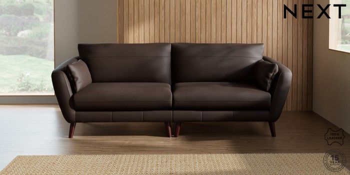 6.12.1 Buy Orlo Leather 4 Seater Sofa Turin Leather Dark Brown Retro Tapered - Dark Brown from the Laura Ashley online shop Click here to use our website with more accessibility support, for example screen readers