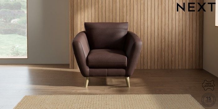 6.12.1 Buy Orlo Leather Armchair Rustic Leather Dark Brown Retro Tapered - Light from the Laura Ashley online shop Click here to use our website with more accessibility support, for example screen readers
