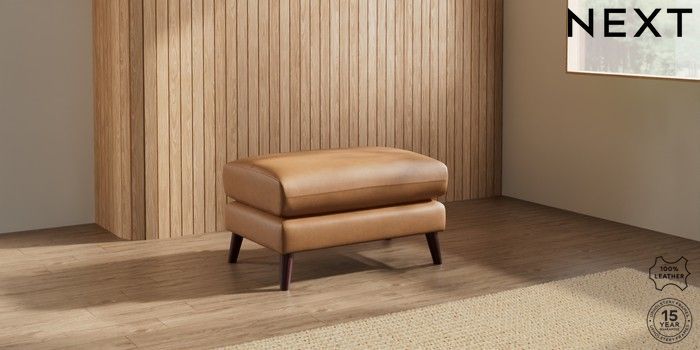 7.0.3 Buy Orlo Leather Footstool Antiqued Leather Light Tan Brown Retro Tapered - Dark Brown from the Laura Ashley online shop Click here to use our website with more accessibility support, for example screen readers