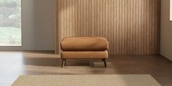 6.12.1 Buy Orlo Leather Footstool Antiqued Leather Light Tan Brown Retro Tapered - Mid from the Laura Ashley online shop Click here to use our website with more accessibility support, for example screen readers