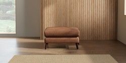 6.12.1 Buy Orlo Leather Footstool Rustic Leather Light Brown Retro Tapered - Dark Brown from the Laura Ashley online shop Click here to use our website with more accessibility support, for example screen readers