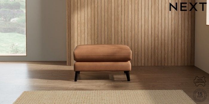 6.12.1 Buy Orlo Leather Footstool Turin Leather Tan Brown Retro Tapered - Dark from the Laura Ashley online shop Click here to use our website with more accessibility support, for example screen readers