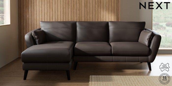 7.0.3 Buy Orlo Leather Medium Sofa Chaise - Left Hand Columbia Dark Brown Retro Tapered - Dark from the Laura Ashley online shop Click here to use our website with more accessibility support, for example screen readers