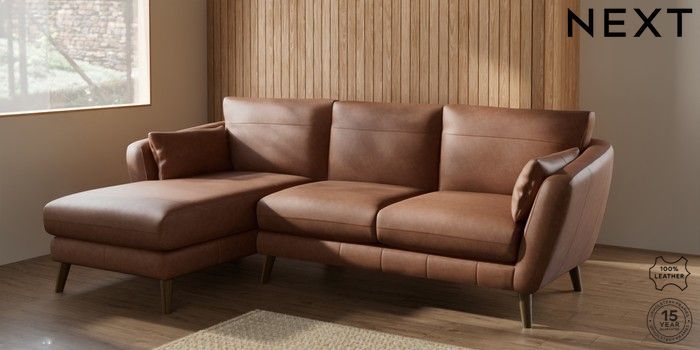 6.12.1 Buy Orlo Leather Medium Sofa Chaise - Left Hand Rustic Leather Light Brown Retro Tapered - Mid from the Laura Ashley online shop Click here to use our website with more accessibility support, for example screen readers