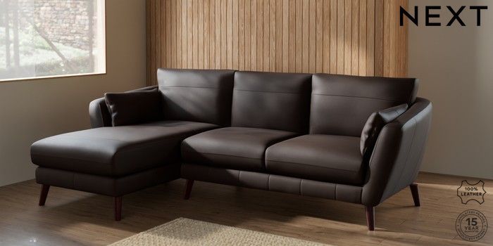 6.12.1 Buy Orlo Leather Medium Sofa Chaise - Left Hand Turin Leather Dark Brown Retro Tapered - Dark Brown from the Laura Ashley online shop Click here to use our website with more accessibility support, for example screen readers